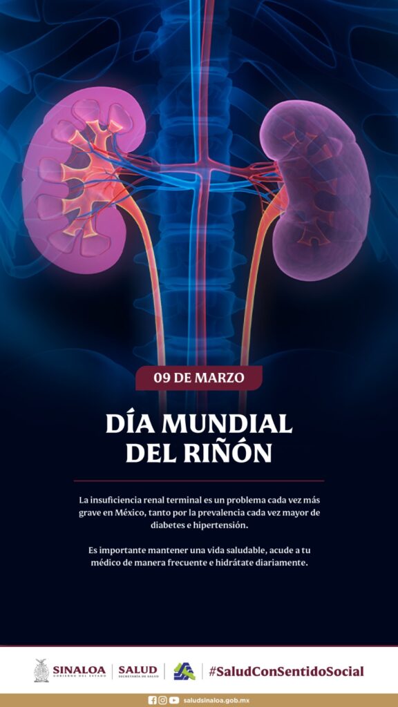 Culiacán, Sinaloa, jueves 9 de marzo de 2023.- En el marco del Día Internacional del Riñón, el sector salud recomienda a la población sinaloense mantener un especial cuidado de este órgano del cuerpo y acudir al médico ante cualquier síntoma que presuma una posible deficiencia en su correcto funcionamiento.