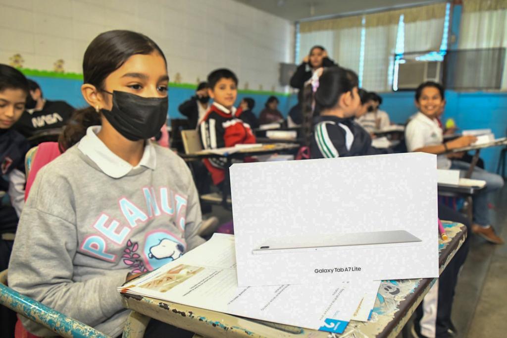 “Esta entrega de esta tablet, de estos dispositivos; les van a hacer de enorme utilidad, ya saben, no nada más aquí dentro de su aula, también fuera. Saben la magia que es estar interconectado, todas las posibilidades de ese mundo mágico de la conexión, de la creatividad y de todo lo que nos puede llevar toda esa información que ahí la van a tener en sus manos”, comentó.