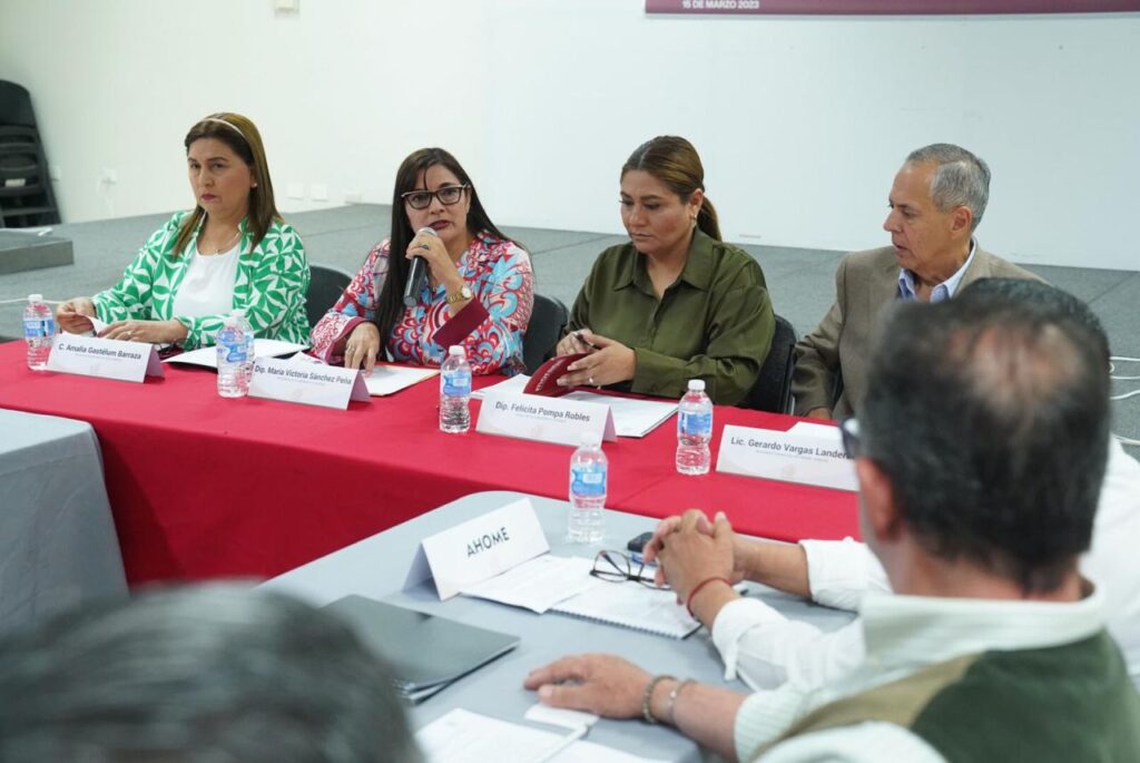 La reunión fue encabezada por las diputadas María Victoria Sánchez Peña y Felicita Pompa Robles, presidenta y vocal de la Comisión de Vivienda, respectivamente, y contó con la presencia del alcalde de Ahome, Gerardo Vargas Landeros, y de la presidenta municipal de Choix, Amalia Gastélum Barraza, con sus respectivos equipos de trabajo, así como funcionarios del ayuntamiento de El Fuerte.