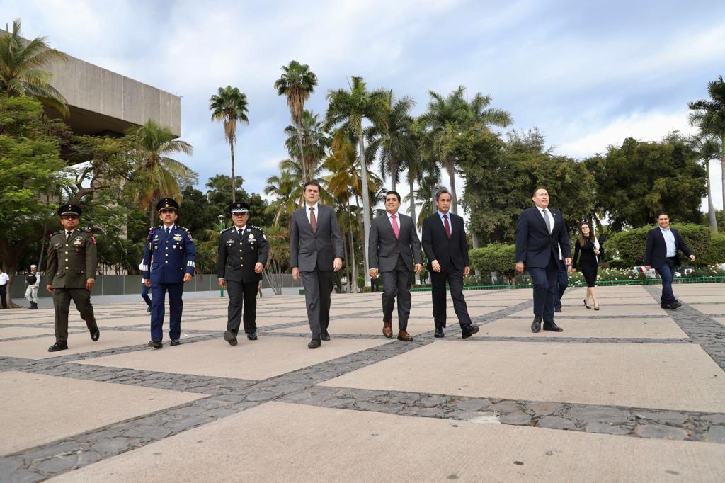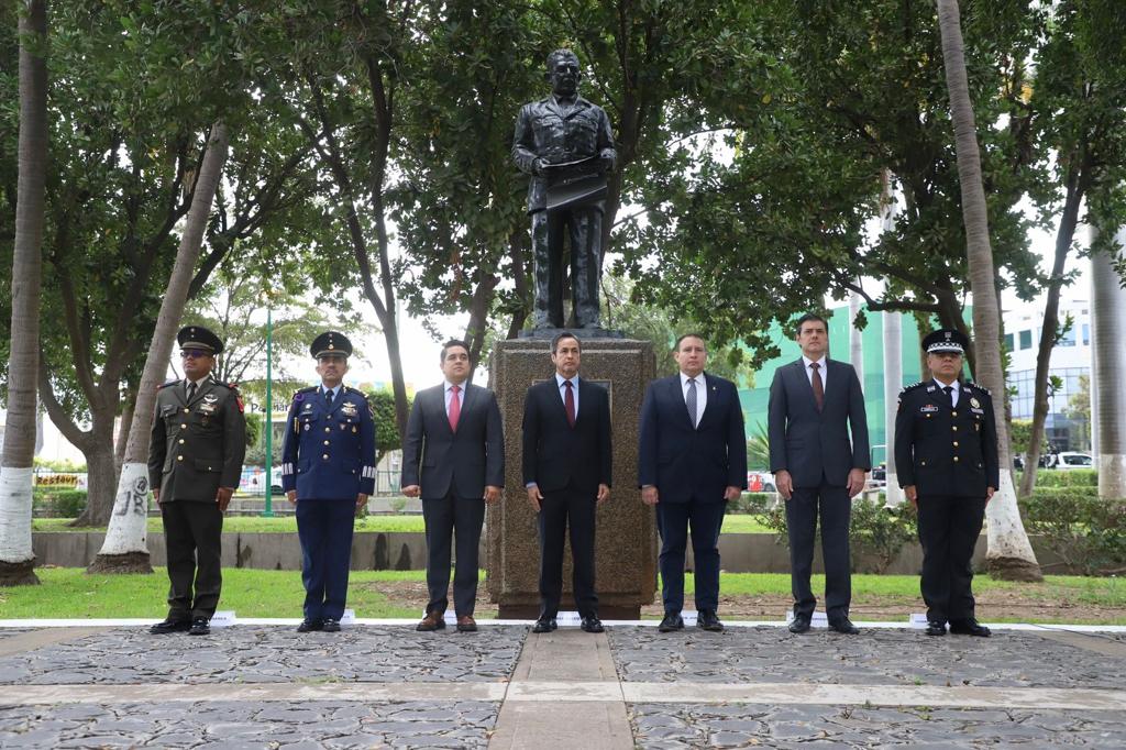 En representación del gobernador Rubén Rocha Moya, el subsecretario de gobierno Rodolfo Jiménez López encabezó este evento conmemorativo acompañado del diputado local y presidente de la Mesa Directiva del H. Congreso del Estado Ricardo Madrid Pérez, el presidente del Supremo Tribunal de Justicia del Estado Jesús Iván Chávez Rangel, asimismo el secretario del Ayuntamiento de Culiacán José Ernesto Peñuelas Castellanos, el representante de la 9na Zona Militar y mayor de Infantería José Gustavo López Moreno, el representante de la Guardia Nacional e inspector general Omar Alberto Cabello Zarazúa y el representante de la Fuerza Aérea Militar No.10 y piloto Aviador Diplomado de Estado Mayor Luis Florencio Aguilar Molina.
