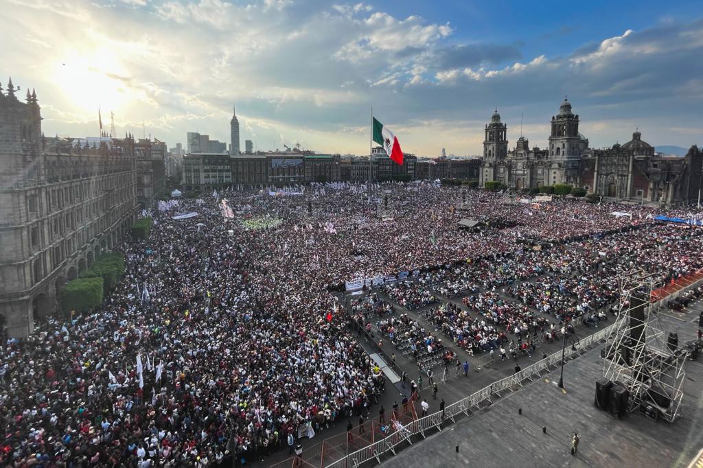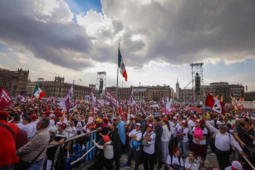 Ciudad de México, a 18 de marzo de 2023.- El gobernador Rubén Rocha Moya asistió la tarde de este sábado al zócalo de la Ciudad de México, para refrendar su apoyo al presidente de México, Andrés Manuel López Obrador, quien con motivo de la conmemoración del 85 aniversario de la Expropiación Petrolera encabezó un multitudinario evento frente a Palacio Nacional.