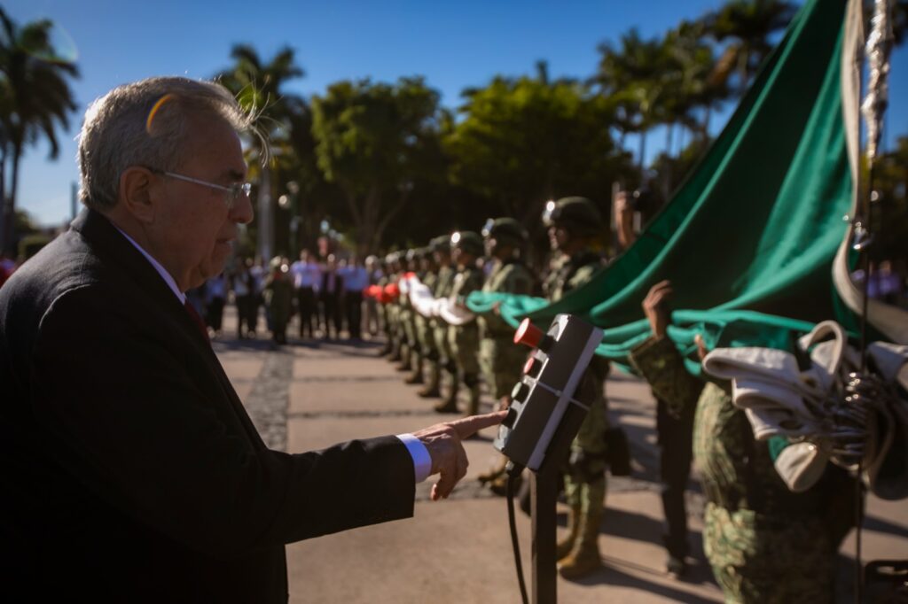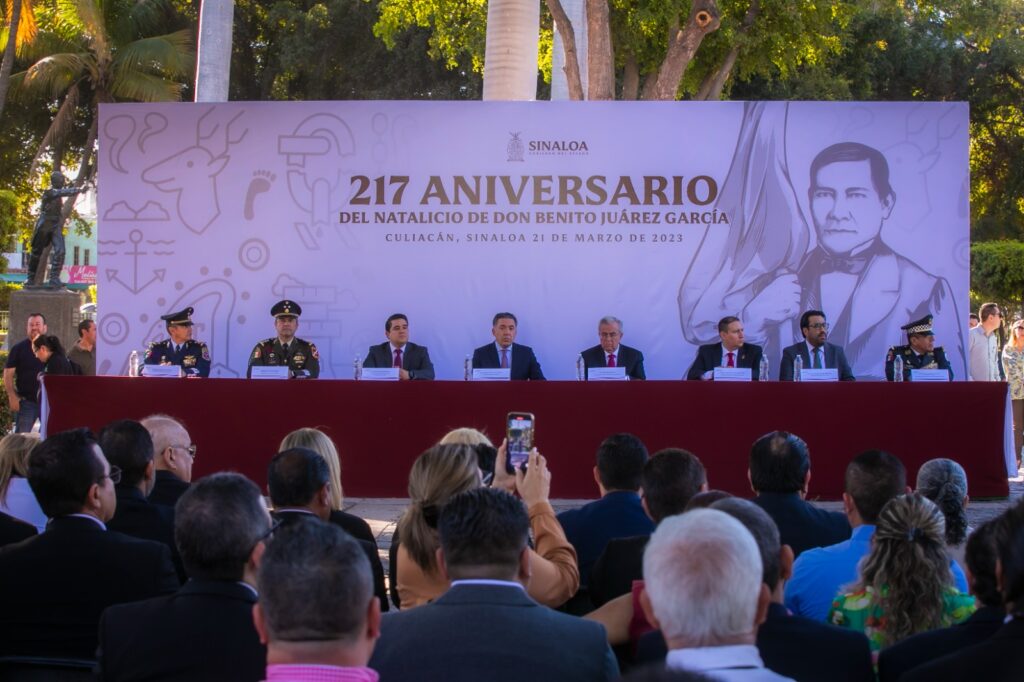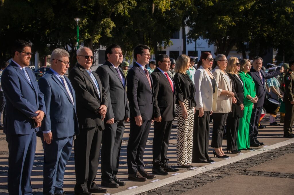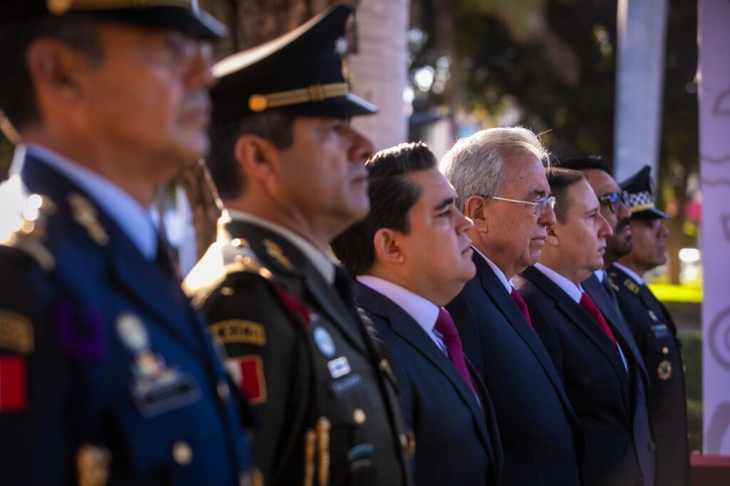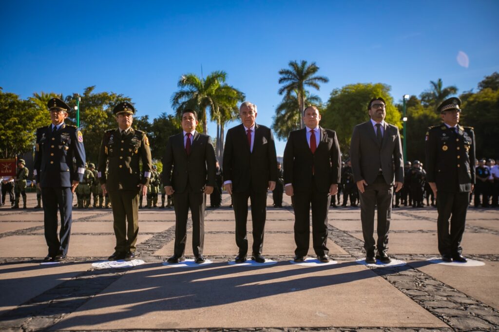 Las autoridades civiles y militares que acompañaron al gobernador Rubén Rocha Moya en este acto conmemorativo fueron el presidente de la Mesa Directiva del H. Congreso del Estado de Sinaloa Ricardo Madrid Pérez, el presidente del Supremo Tribunal de Justicia Jesús Iván Chávez Rangel, el presidente municipal de Culiacán Juan de Dios Gámez Mendívil, el comandante de la 9/a Zona Militar Alfredo Salgado Vargas, el coordinador estatal de la Guardia Nacional en Sinaloa Francisco Arellano Ávila, el comandante de la Base Aérea Militar No. 10 en Sinaloa José Miguel de Luna Genel.
