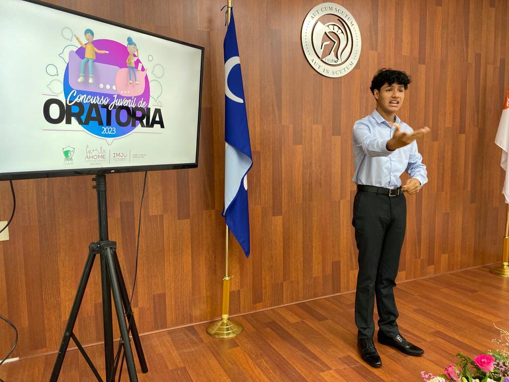 Los Mochis, Ahome, Sinaloa, a 22 de Marzo del 2023.- Los jóvenes Salvador Segoviano Nieblas, de nivel secundarias, Juan Pablo Valdez, de preparatoria y Luis Cervantes en universidad, son los ganadores del concurso de oratoria convocado por el Instituto Municipal de la Juventud (IMJU) de Ahome.