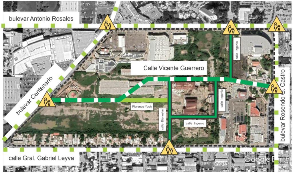 Explicó que se proyecta construir una calle, de la ampliación Guerrero, desde Rosendo G. Castro a Centenario, con una amplitud de alrededor de 30 metros de ancho, con banquetas, camellón, ciclovía, rampas, y arborización, como lo marcan los reglamentos internacionales de este tipo de zonas 30.