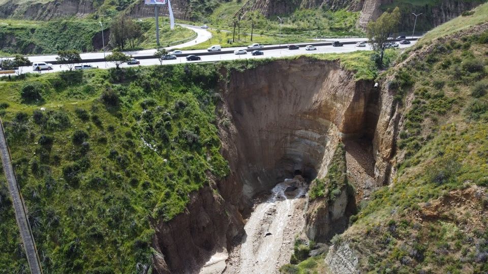 El socavón se abrió en la zona conocida como el Cañón del Matadero, que generó un caos en la frontera de México con Estados Unidos.