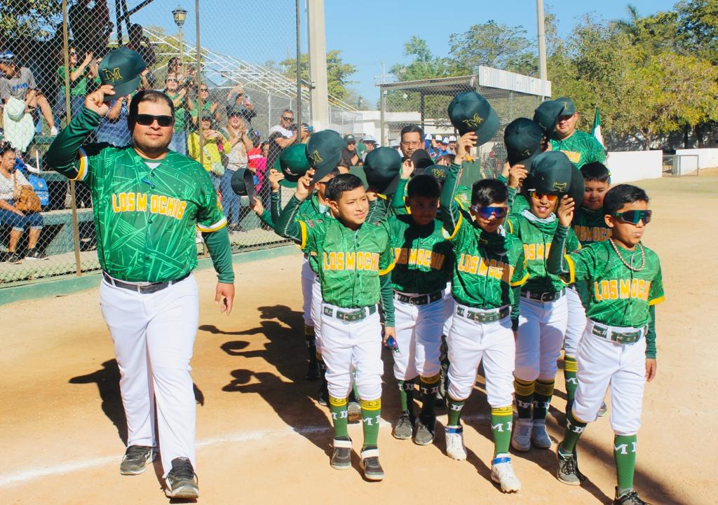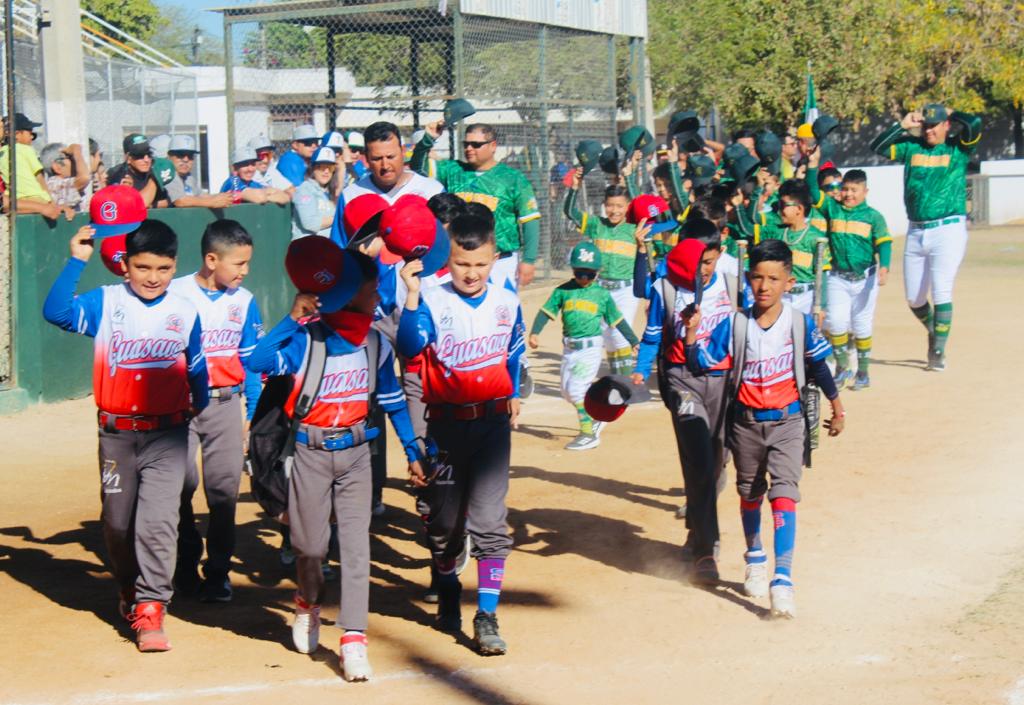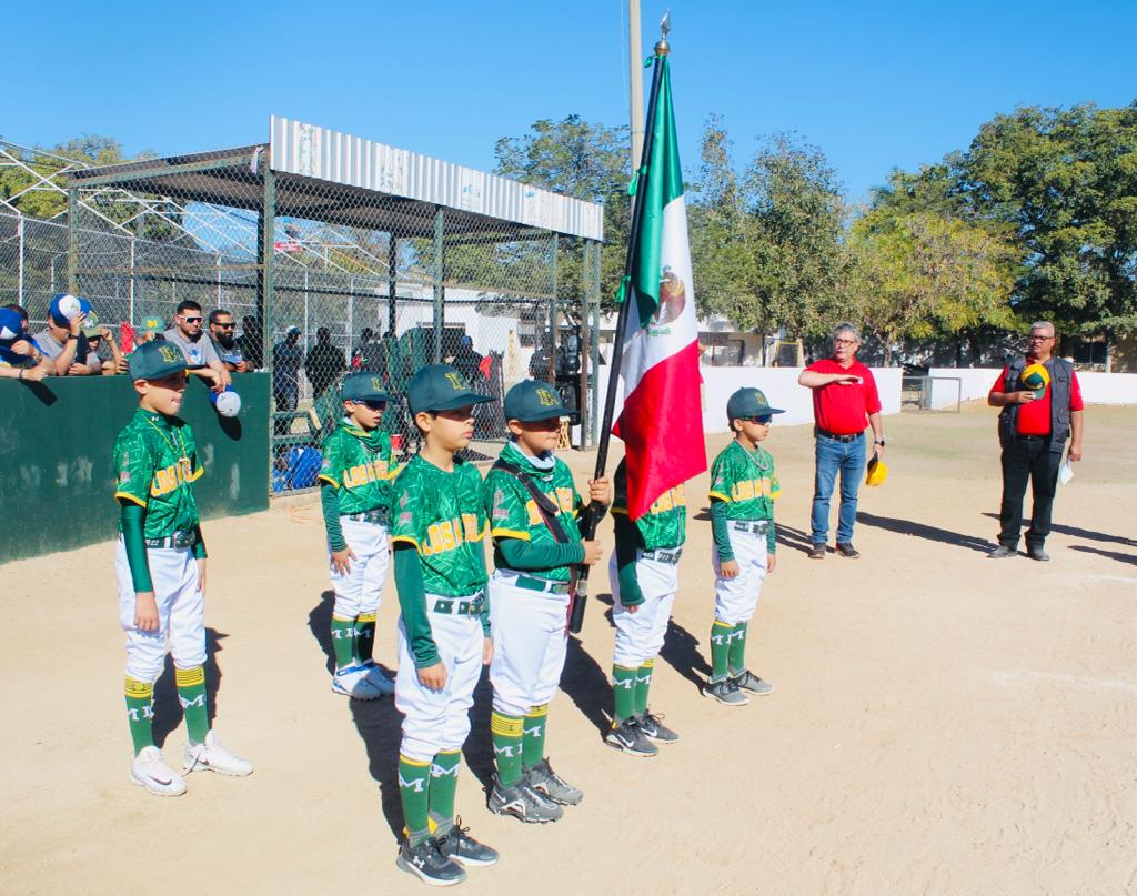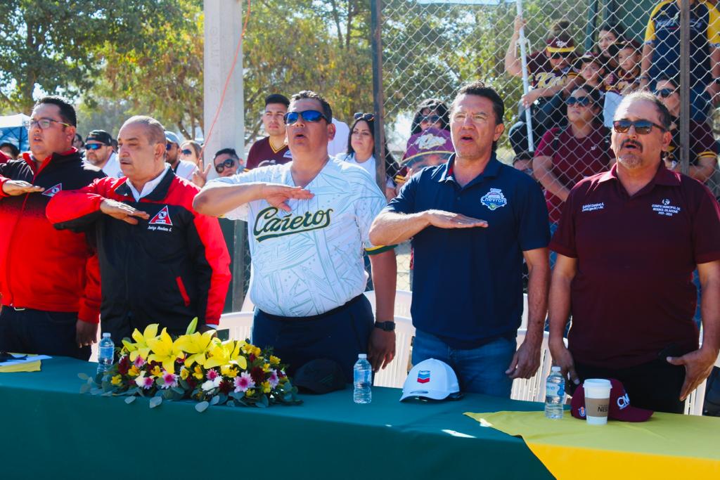 Este acto dio inicio con el desfile de pequeños beisbolistas los cuales fueron aplaudidos por cada uno de los presentes; posteriormente se rindieron los honores patrios por parte de los integrantes del la Liga de Ahome quienes conformaron la escolta.