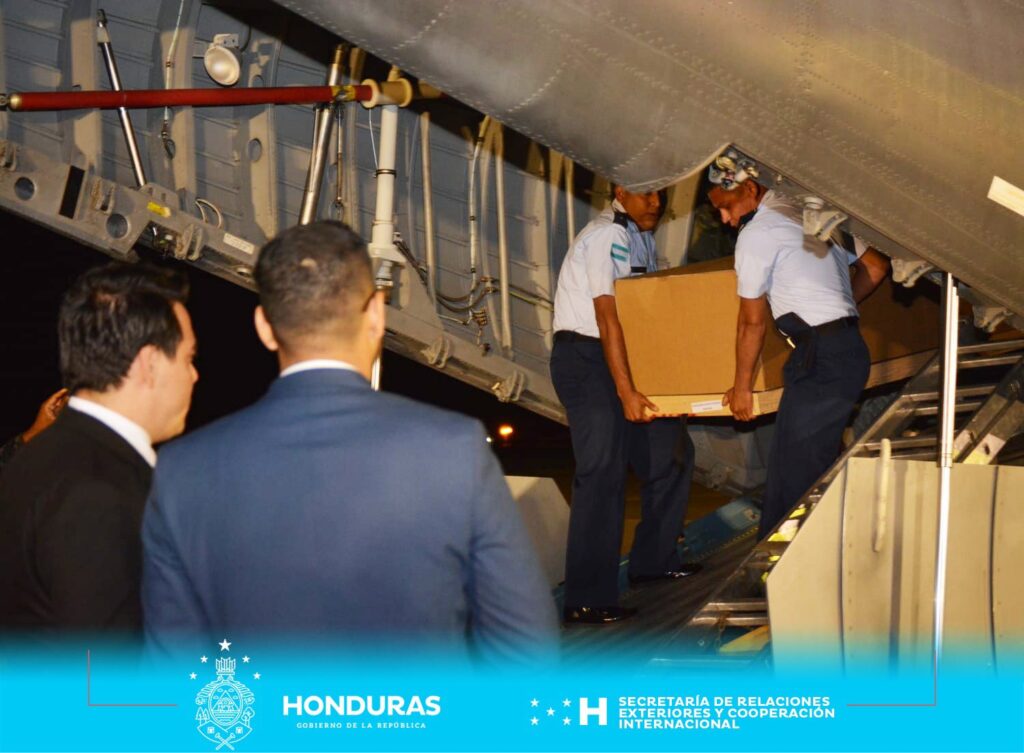 Los féretros fueron recibidos por el vicecanciller de Honduras, Antonio García, y la ministra de Derechos Humanos, Natalie Roque.