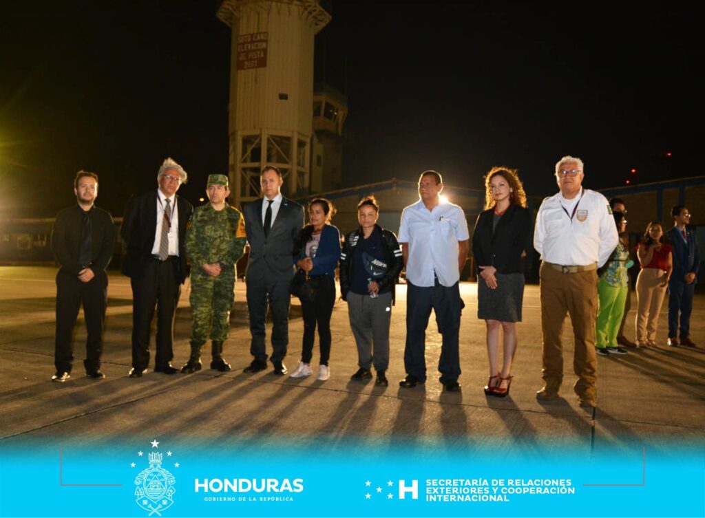 Los cuerpos arribaron a la Base Aérea Enrique Soto Cano, en el centro de Honduras, hacia las 21:00 h local en un avión de la Fuerza Aérea Mexicana.