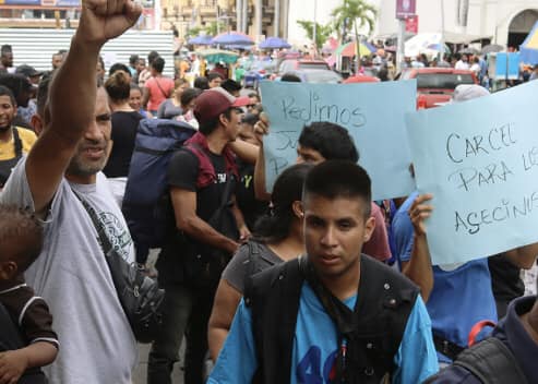 Cientos de migrantes en la frontera sur de México acudieron a la Comisión Nacional de los Derechos Humanos (CNDH) para pedir a los policías que los dejen permanecer en los parques de Tapachula, donde denuncian el acoso de los agentes previo a una protesta masiva.