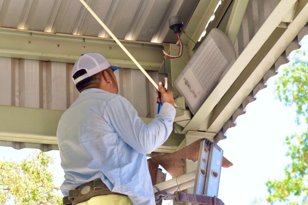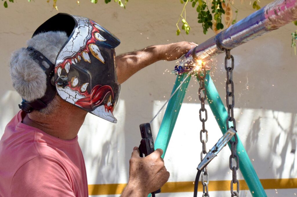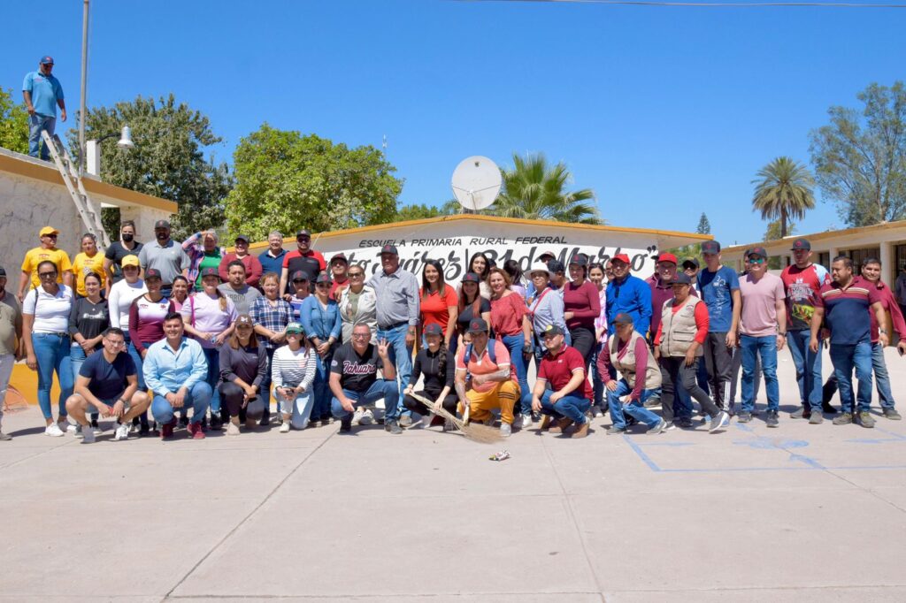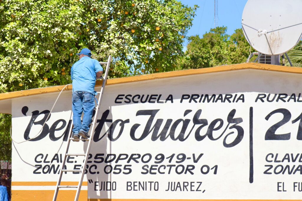 El Fuerte, Sinaloa, a 22 de abril del 2023.- Proactivos y con herramientas en mano, el equipo de trabajo que encabeza el Presidente Gildardo Leyva Ortega, asistió esta mañana a la comunidad de Vinaterías, para realizar trabajos de rehabilitación en la Escuela Primaria Rural Benito Juárez. Limpieza, pinta de herrería, instalación de columpios y luminarias, fueron algunas de las principales actividades que llevaron a cabo los funcionarios.