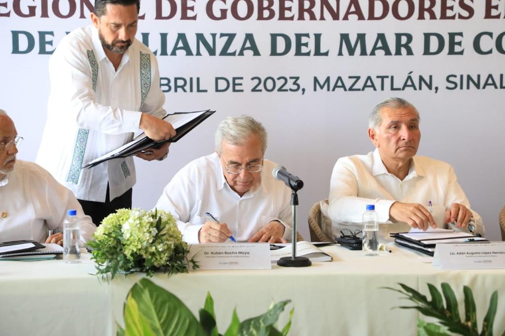 Ante la presencia de sus homólogos de Baja California, Marina del Pilar Ávila Olmeda, de Baja California Sur, Víctor Manuel Castro Cosío, de Nayarit, Miguel Ángel Navarro Quintero y de Sonora, Alfonso Durazo Montaño, estados que conforman la Macro Región Mar de Cortés, el mandatario estatal señaló que los Gobernadores del Pacífico impulsan esta estrategia del Mar de Cortés que pretende detonar la infraestructura regional a través de una serie de proyectos portuarios, el cual tiene un éxito garantizado en base a los puntos turísticos ya desarrollados en las entidades participantes.