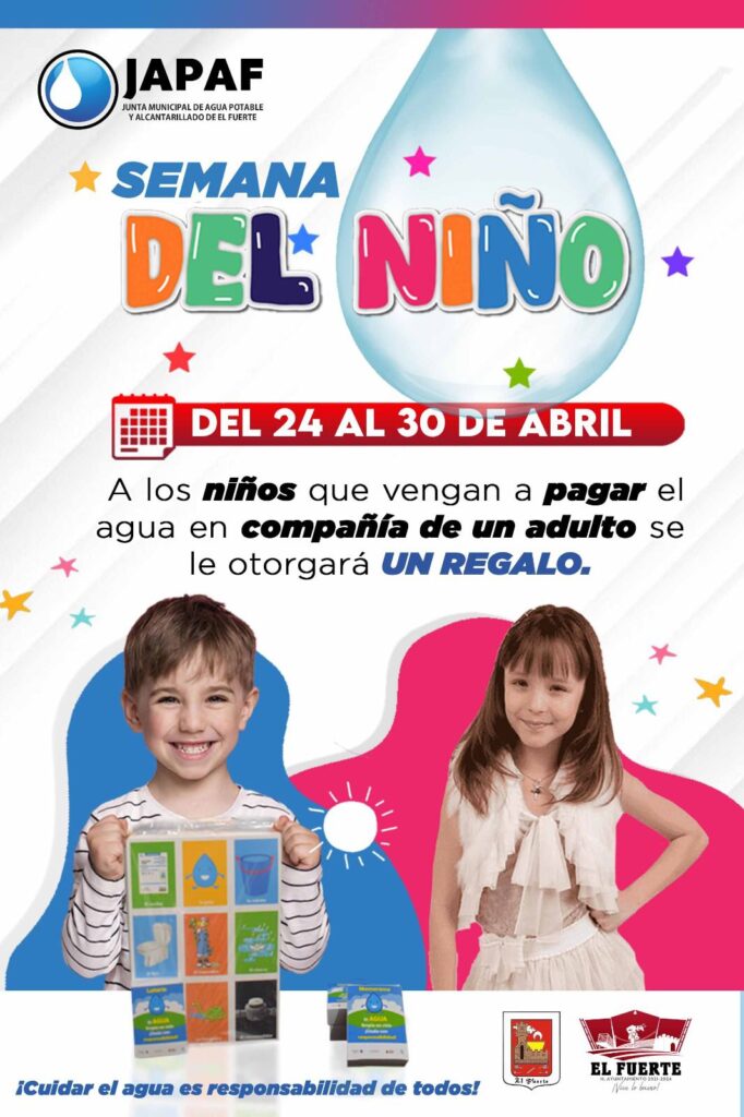 El Fuerte, Sinaloa, a 24 de abril del 2023.- En el marco conmemorativo del Día del Niño, la Junta de Agua Potable y Alcantarillado de El Fuerte, se une a las celebraciones e invita a la ciudadanía a participar, en la Semana del Niño, actividad que consiste en entregar un regalo a niñas y niños que acudan a ventanilla en compañía de un adulto a pagar su recibo de agua, esto con el objetivo de celebrar la niñez, así como fomentar en ellos y sus padres, una cultura de pago.