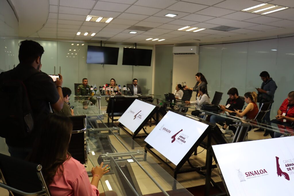 Culiacán, Sinaloa, miércoles 26 de abril de 2023.- La Secretaría de la Defensa Nacional y Gobierno del Estado, a través del Secretariado Ejecutivo del Sistema Estatal de Seguridad Pública y la Secretaría de Seguridad Pública, anunciaron el arranque de la campaña de Canje de Armas de Fuego Sinaloa 2023, la cual dará inicio el próximo miércoles 3 de mayo en los municipios de Culiacán y Navolato.