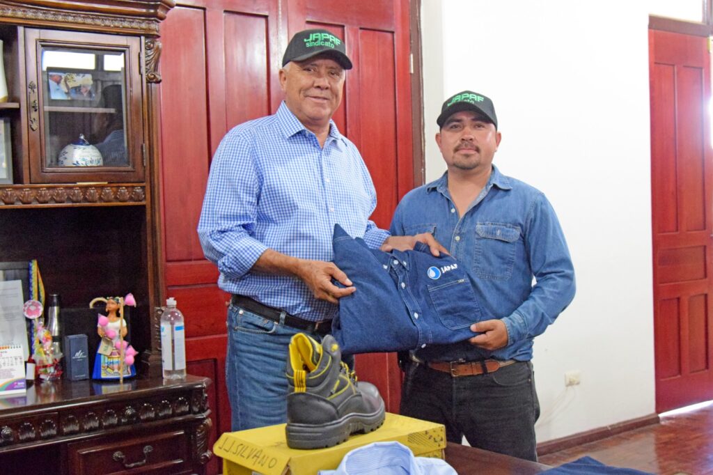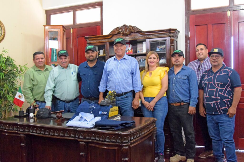 El Fuerte, Sinaloa, a 26 de abril del 2023.- En cumplimiento a lo que marca el contrato colectivo de trabajo del Sindicato de Trabajadores del Ayuntamiento, así como el de la Junta de Agua Potable y Alcantarillado de El Fuerte, el Presidente Municipal Gildardo Leyva Ortega les hizo entrega simbólica de los uniformes de este año, esto previo al desfile del 01 de mayo, para el cual ya se encuentran listos y dispuestos a marchar por las principales calles de la cabecera municipal.
