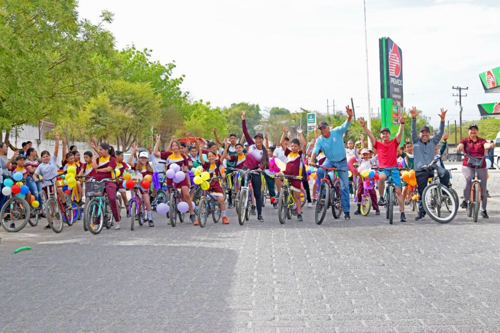 En compañía del Alcalde Gildardo Leyva niñas y niños de distintas escuelas primarias recorrieron en bicicletas las principales calles de la cabecera municipal y posteriormente participaron en una divertida competencia deportiva.