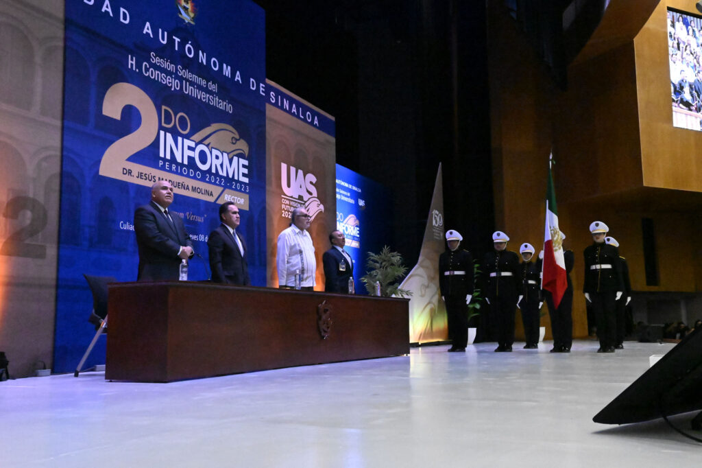 Lo anterior quedó de manifiesto en un mensaje proyectado durante la ceremonia del Segundo Informe de Labores 2022-2023 del Rector, doctor Jesús Madueña Molina, ante la comunidad universitaria y la sociedad sinaloense.