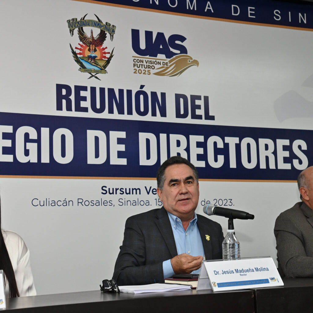 Directores de nivel medio superior y superior de todo el estado de la Universidad Autónoma de Sinaloa (UAS) y funcionarios de la administración central encabezados por el Rector, doctor Jesús Madueña Molina, sostuvieron una reunión de trabajo para definir actividades en la agenda institucional y el inicio del Ciclo Escolar 2023-2024, los cuales serán propuestos al H. Consejo Universitario.