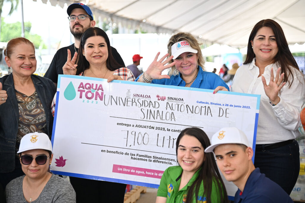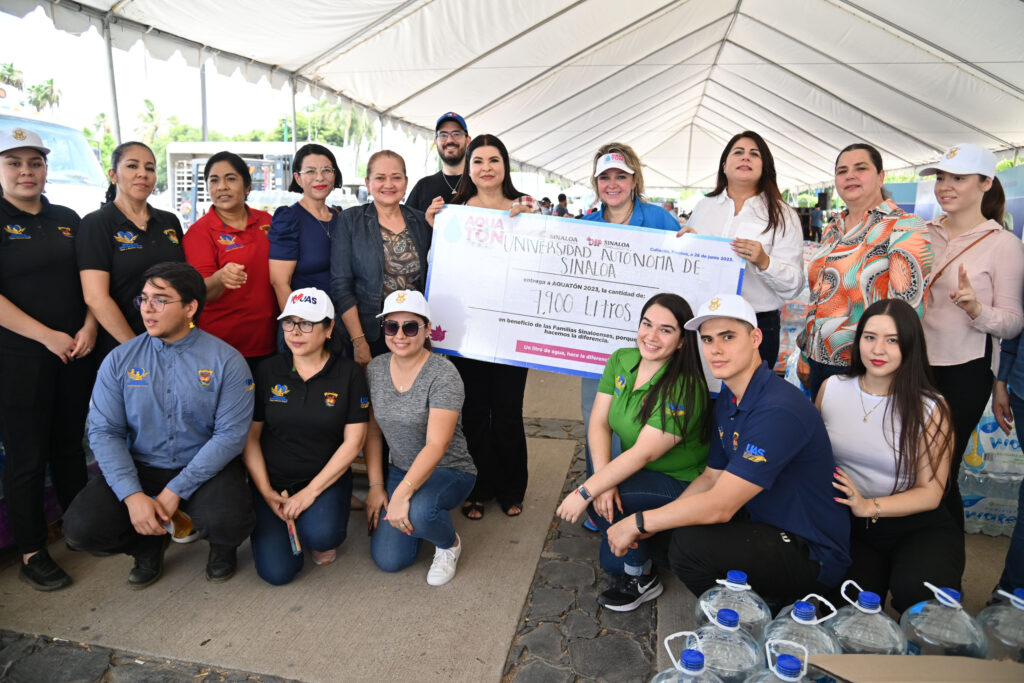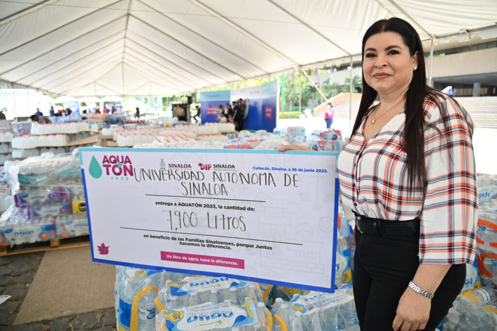 Sensible y ocupada en aportar a las causas sociales que afectan a la comunidad sinaloense, la Universidad Autónoma de Sinaloa (UAS) hizo entrega de una donación de 7 mil 900 litros de agua para aportar al Aquatón 2023 del Sistema DIF Sinaloa, que encabeza su presidenta, la doctora Eneyda Rocha Ruiz, en su segunda edición “Un litro de agua hace la diferencia”.
