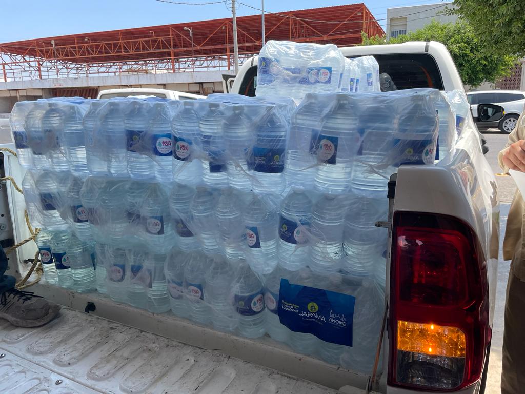 “Vamos a entregarles en el transcurso del día 5 mil litros, ahorita llegó la primer camioneta con aproximadamente, mil 200 litros, es agua de Los Mochis, porque el agua más buena es la de Mochis, es de la JAPAMA, del Ayuntamiento de Ahome y es un compromiso con el AQUATÓN que promueven tanto el DIF del Estado como del DIF del Municipio de Ahome, es un compromiso y si necesitan más les mandaremos más.