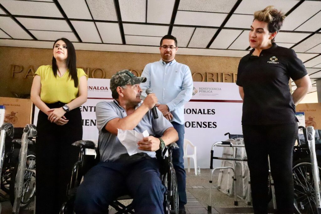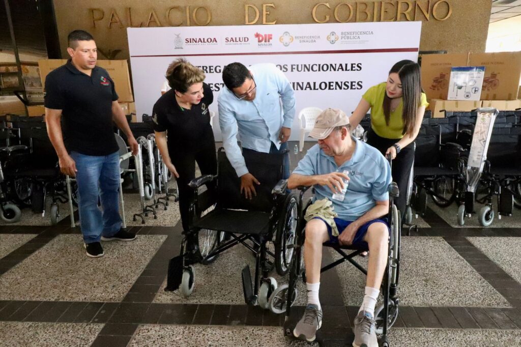 Los apoyos funcionales entregados fueron 87 sillas de ruedas, 7 sillas de baño para adulto, 6 pares de muletas, 6 andaderas, 7 bastones de cuatro puntos, los cuales fueron distribuidos entre los municipios de Culiacán, Navolato, Mocorito y Guasave.