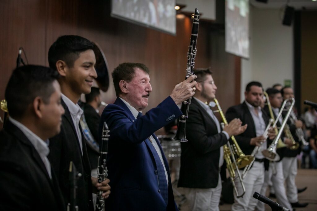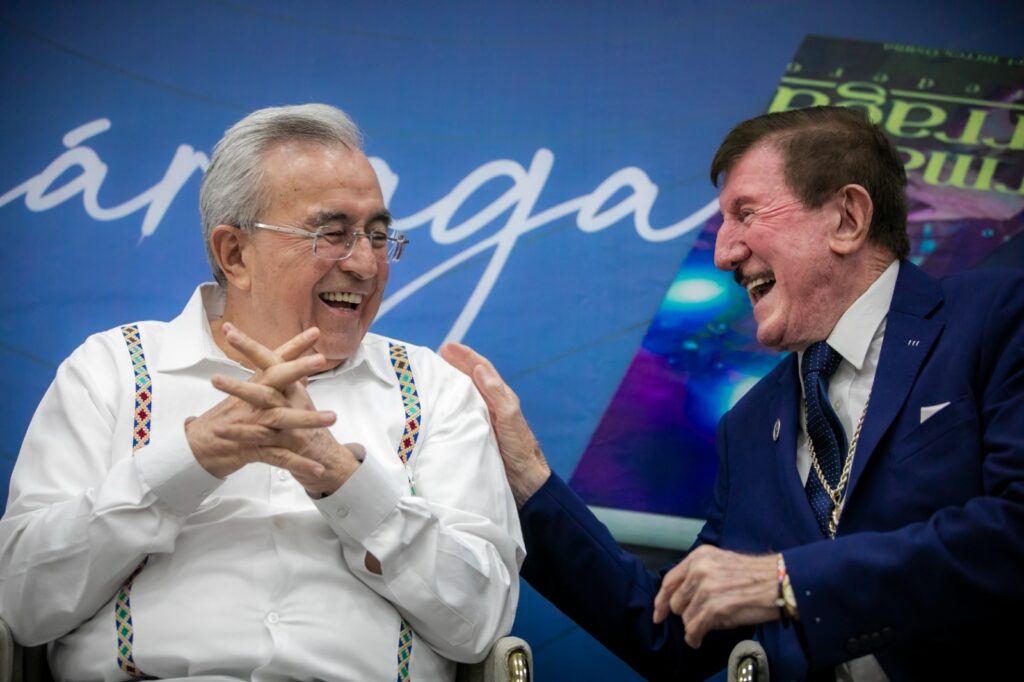 Culiacán, Sinaloa, a 28 de Junio de 2023.- Al ritmo de las espectaculares notas musicales de la banda «Estrellas de Sinaloa» que inundaron de alegría el Salón Constituyentes de Congreso del Estado, este miércoles el Gobernador Rubén Rocha Moya participó como comentarista en la presentación del libro «Germán Lizárraga, el Heredero» organizado por la LXIV Legislatura, cuyos diputados Feliciano Castro Meléndrez, Presidente de la Junta de Coordinación Política y Ricardo Madrid Pérez, Presidente de la Mesa Directiva, otorgaron una cálida bienvenida al también llamado «Rey de la Banda».