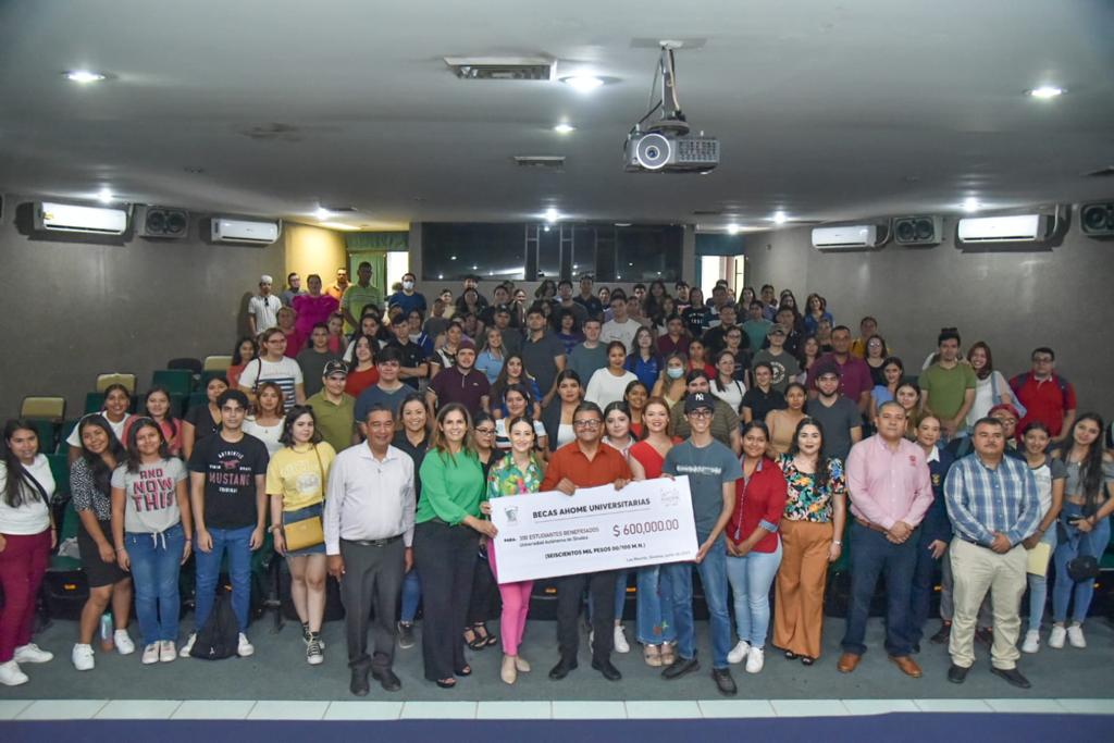 Los Mochis, Ahome, Sinaloa, a 30 de Junio del 2023.- Con la entrega de apoyos económicos para 300 estudiantes de la Universidad Autónoma de Sinaloa (UAS), concluyó con éxito el programa “Becas Ahome Universitarias” del ciclo escolar 2022-2023, que benefició a mil alumnos de cuatro escuelas públicas, con una inversión total de 2 millones de pesos.