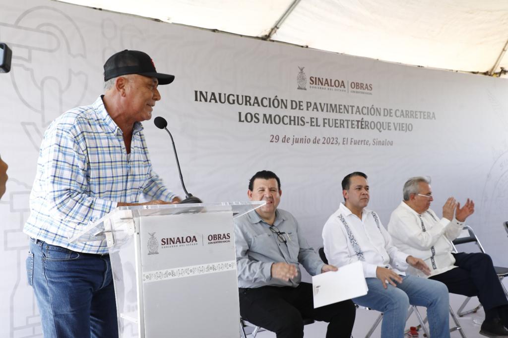 El Fuerte, Sinaloa, a 29 de Junio de 2023.- Concebida como una vía de traslado en beneficio directo de las comunidades más desprotegidas del municipio de El Fuerte, este jueves el Gobernador Rubén Rocha Moya inauguró en compañía del Alcalde Gildardo Leyva Ortega, la obra de pavimentación del camino que conduce de la carretera Los Mochis – El Fuerte hacia Téroque Viejo, añejo anhelo de sus habitantes, mayoritariamente indígenas, que finalmente se cristalizó en favor de miles de ciudadanos y muy especialmente para quienes radican en Júpare, Taxtes Viejos, La Ladrillera y el propio Téroque Viejo.