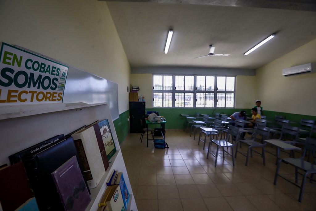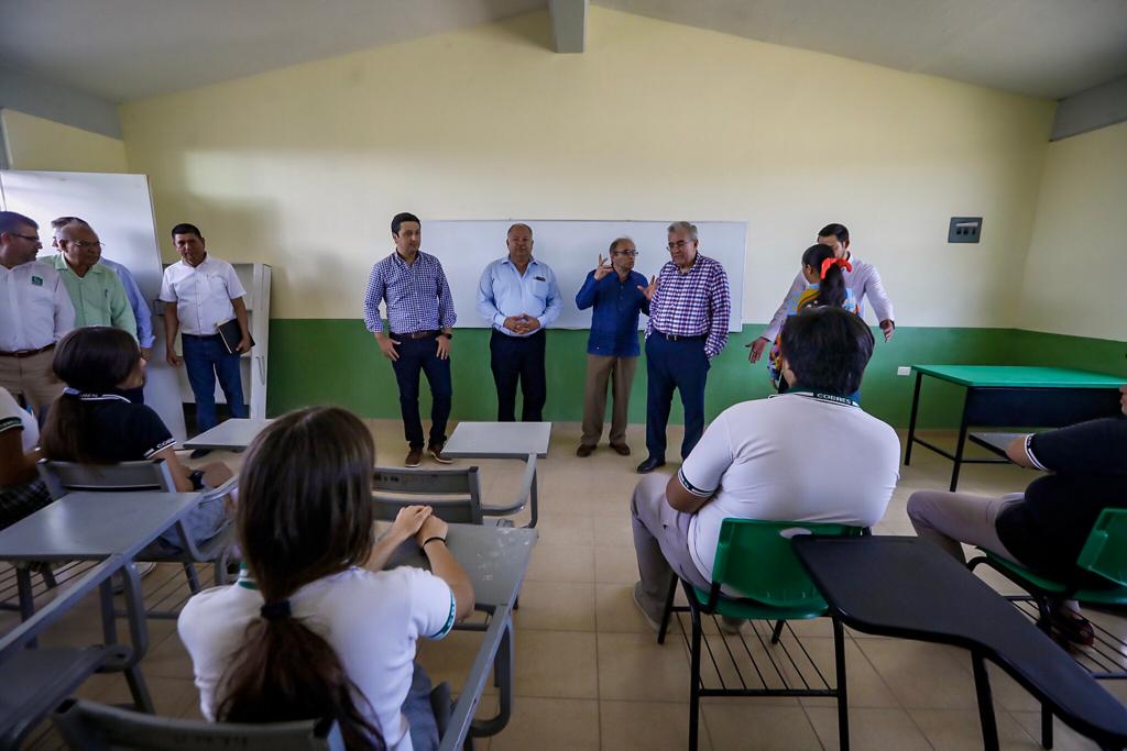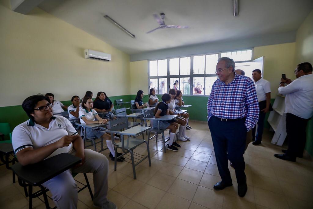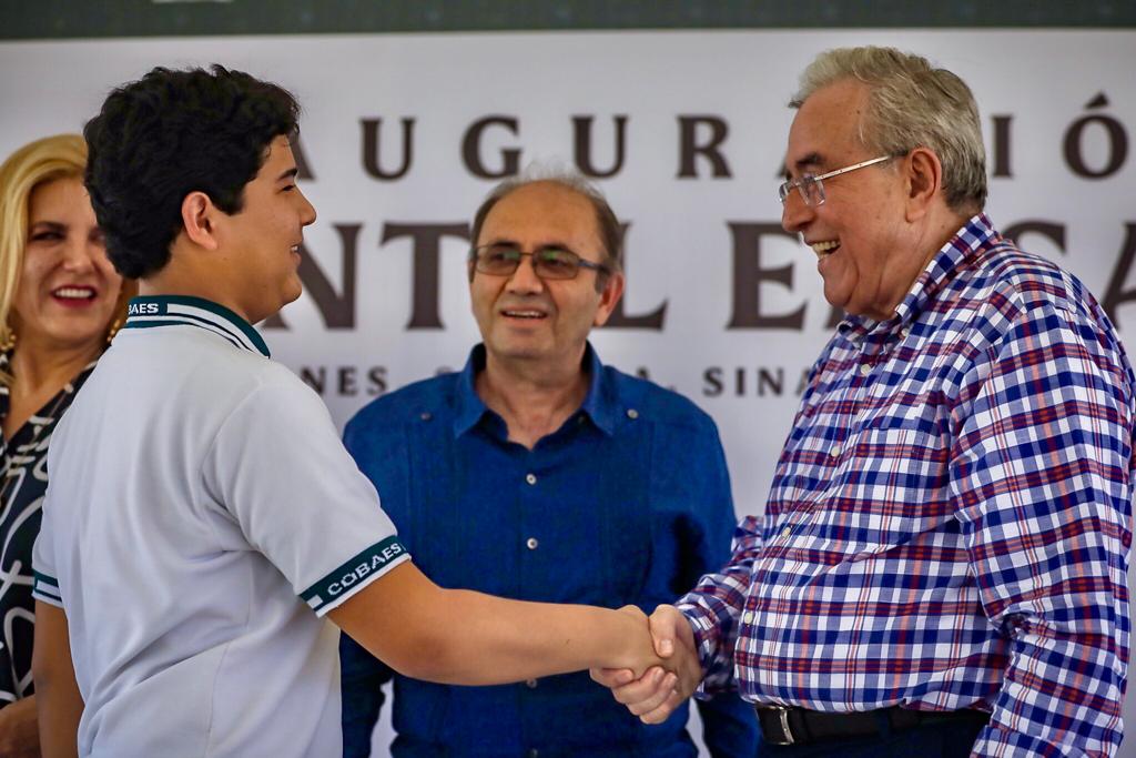 Por su parte, el director de COBAES, Santiago Inzunza Cázarez, agradeció al gobernador Rubén Rocha Moya por el apoyo brindado al Colegio de Bachilleres para mejorar la infraestructura de los 128 planteles que operan en la entidad, “hemos contado con su ayuda, me parece un momento propicio para reconocer el apoyo decidido que ha prestado a COBAES, este es un ejemplo, esta es una escuela nueva apenas lleva a su segundo año vamos por la primera generación”.