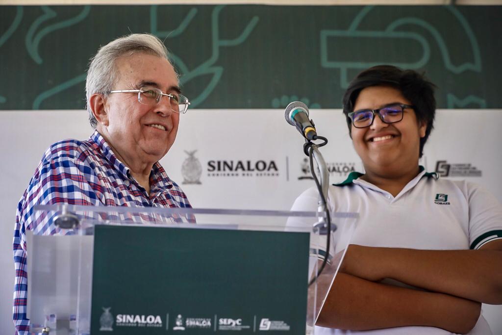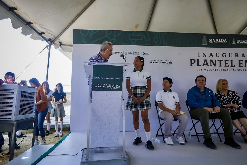 A su vez, el alumno del EMSAD 129 de COBAES “Los Melones”, Eleazar Perea León, recordó que hace algunos meses le solicitó al gobernador Rubén Rocha Moya la construcción de una escuela, “le pedí al señor gobernador que nos apoyara con la construcción del plantel y me respondió que pronto contaríamos con esas instalaciones propias, nos da mucho gusto que hoy su palabra es cumplida”.