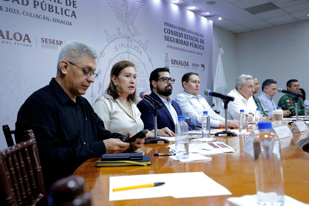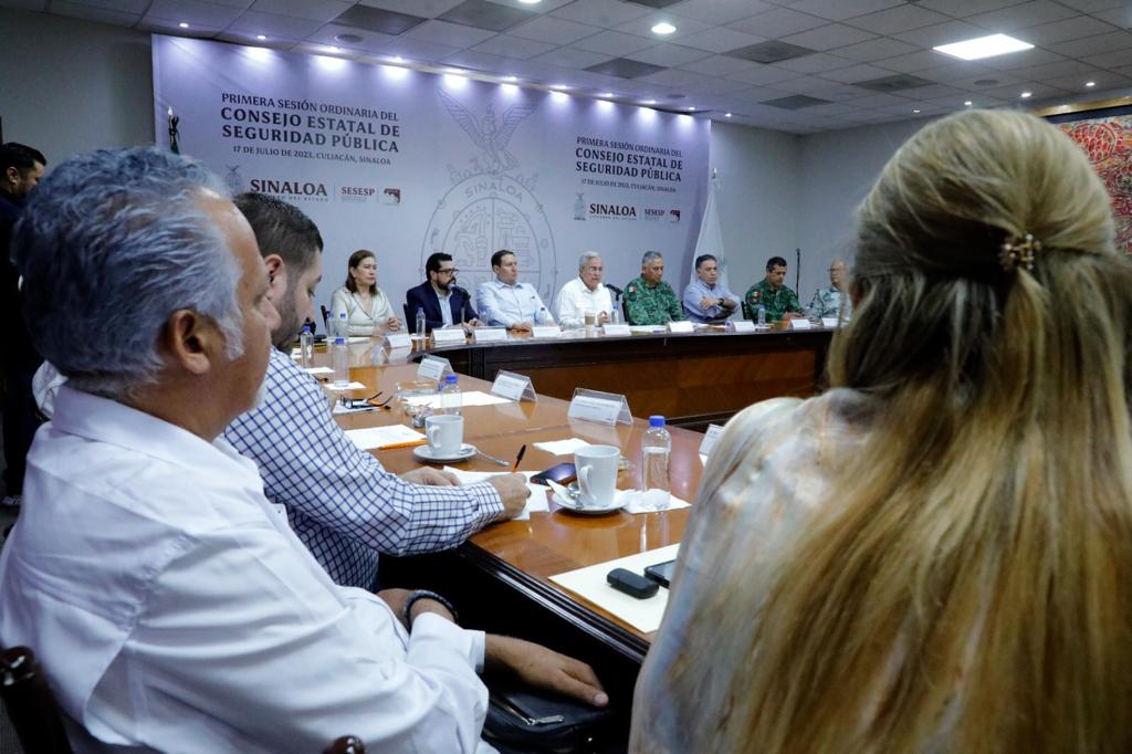 Culiacán, Sinaloa, a 17 de Julio de 2023.- Como un valioso instrumento de coordinación institucional para mejorar la situación de seguridad, detectando y ejecutando soluciones efectivas y duraderas contras las diferentes causas de los delitos, consideró el Gobernador Rubén Rocha Moya al Consejo Estatal de Seguridad Pública, cuya primera Sesión Ordinaria del presente año encabezó está mañana en las instalaciones de Palacio de Gobierno ante representantes de las fuerzas armadas y de órganos de impartición de justicia, así como las y los Presidentes Municipales, entre otros funcionarios.