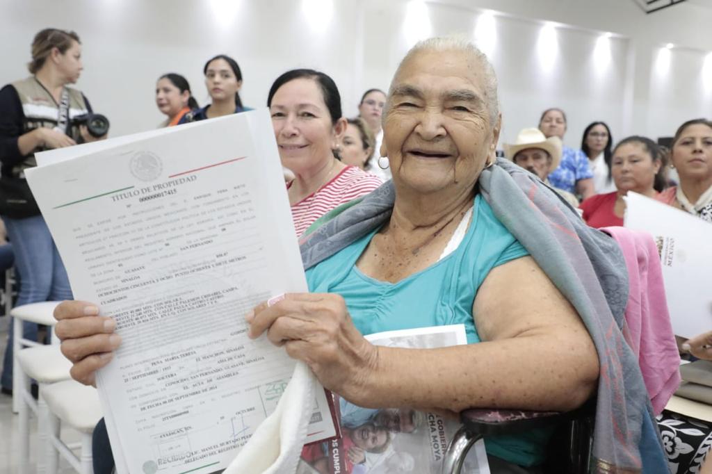 “Tiene que haber fiesta el día de hoy porque son 3543 familias beneficiadas, con esta indicación que nos dio el Gobernador de darle certeza, certidumbre, paz, a la gente, para que recibieran su título de propiedad. Es una mesa itinerante le llamamos, porque vamos municipio por municipio y ahí recibimos nosotros todas las peticiones. Ya van aproximadamente 20 mil peticiones que han hecho y con muy buenos resultados, porque empezamos en Marzo a trabajarla y al día de hoy ya tenemos 10 mil familias beneficiadas y ha sido por esa voluntad de hierro de nuestro Gobernador, el cual considero yo que es humanista”, precisó la Secretaria.