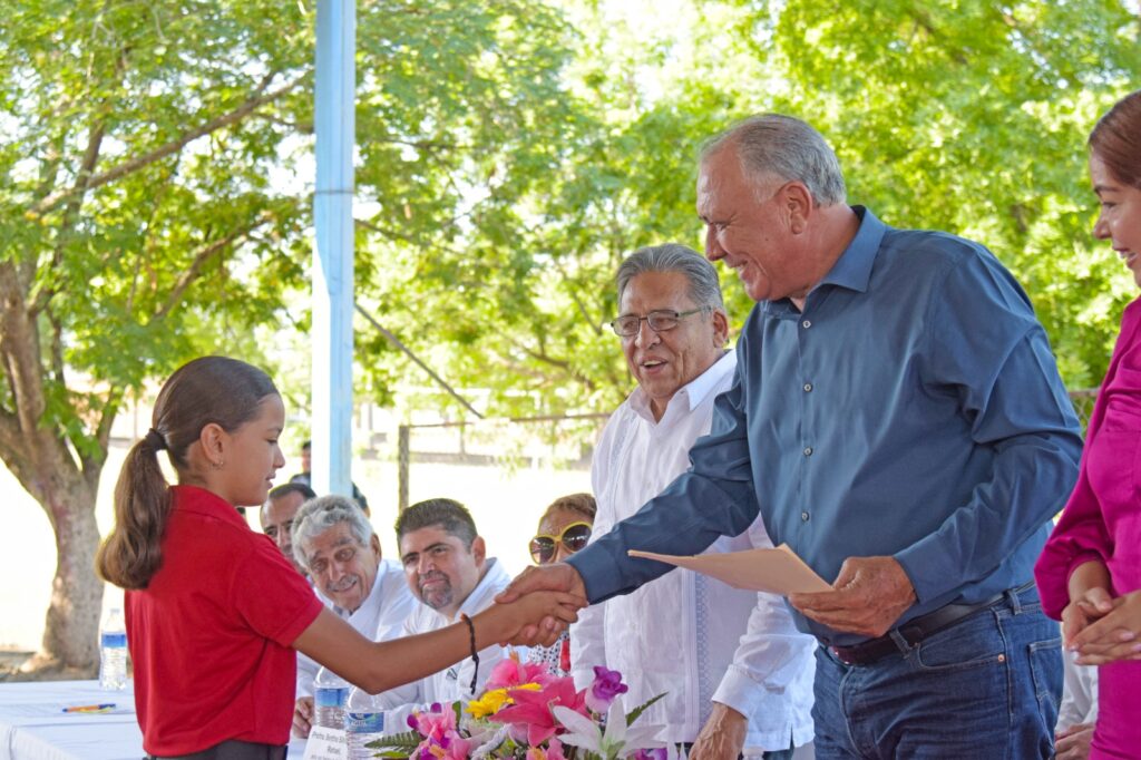 Leyva Ortega dio un mensaje a las niñas, niños, personal docente y padres de familia ahí presentes, deseándoles un ciclo escolar de mucho éxito y aprovecho para responder sobre las peticiones que externó una alumna de la escuela, comprometiéndose a apoyar con dos aires acondicionados y la construcción de un área deportiva.