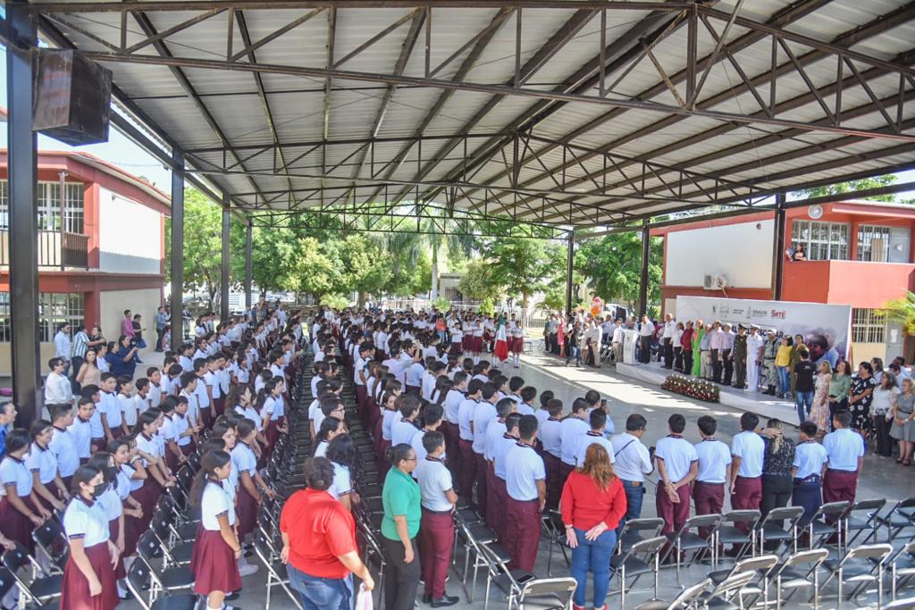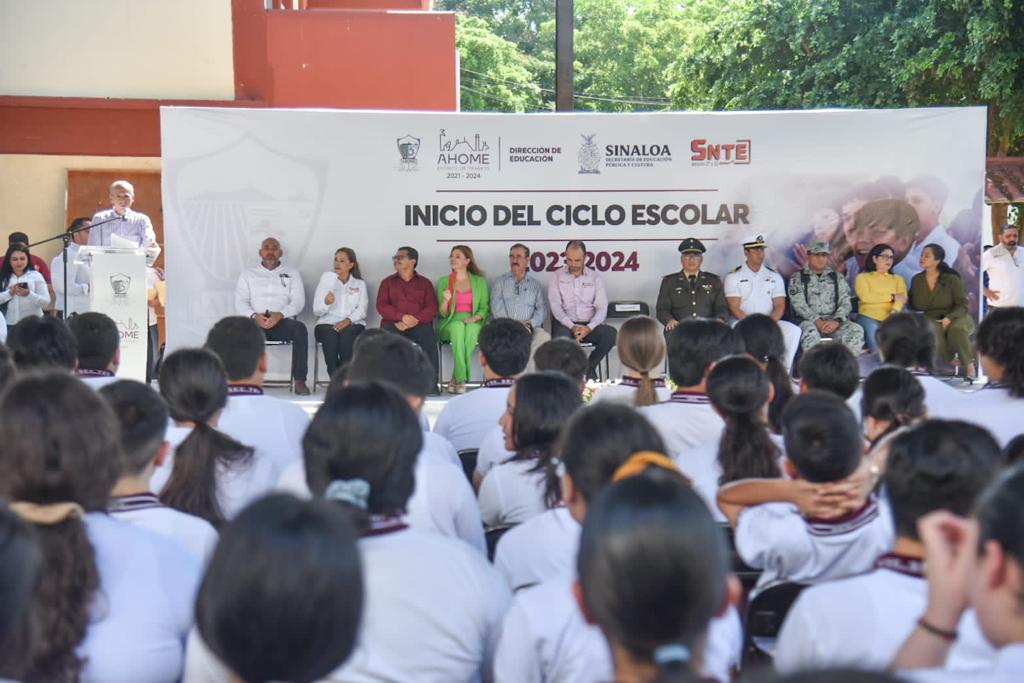 Los Mochis, Ahome, Sinaloa, a 28 de Agosto del 2023.- La Escuela Secundaria Técnica No. 94 del Fraccionamiento Nuevo Horizonte de la ciudad de Los Mochis, fue sede del inicio del Ciclo Escolar 2023-2024, y tuvo como invitado especial al Presidente Municipal de Ahome, Gerardo Octavio Vargas Landeros, quien en su mensaje dijo a los jóvenes alumnos valoren el esfuerzo de las autoridades, maestros y padres de familia para consolidar la Nueva Escuela Mexicana.