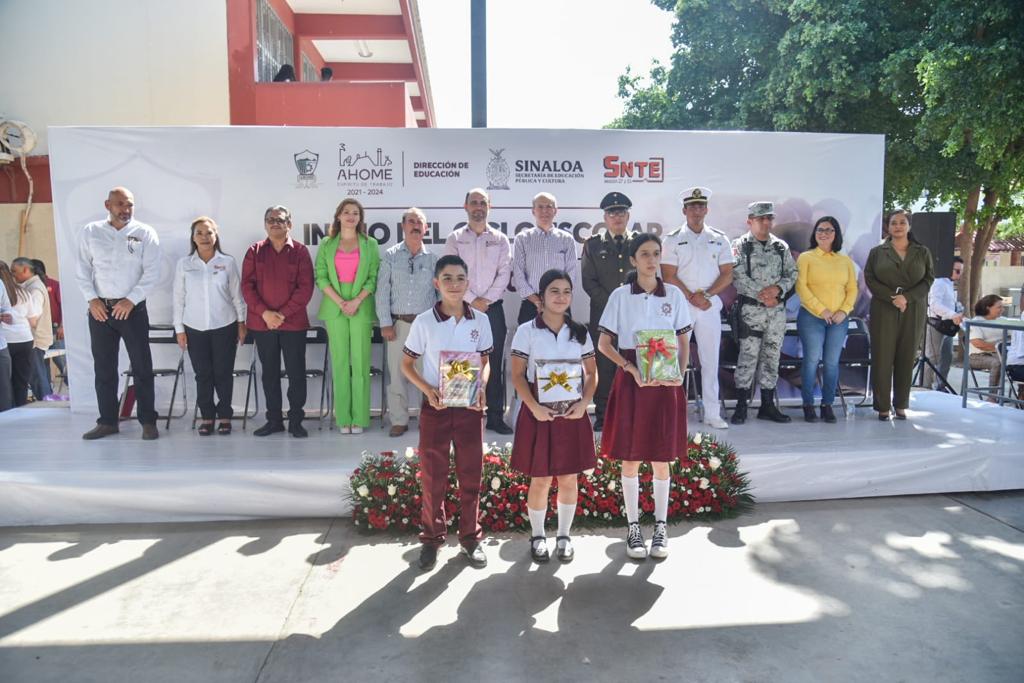 La información de las autoridades educativas indica que en Ahome inician clases 195 escuelas de preescolar con 14 mil 459 alumnos; 225 primarias con 41 mil 944 estudiantes y 95 secundarias con 20 mil 823 alumnos, dando un total de 515 planteles y 77 mil 226 alumnos del nivel básico.