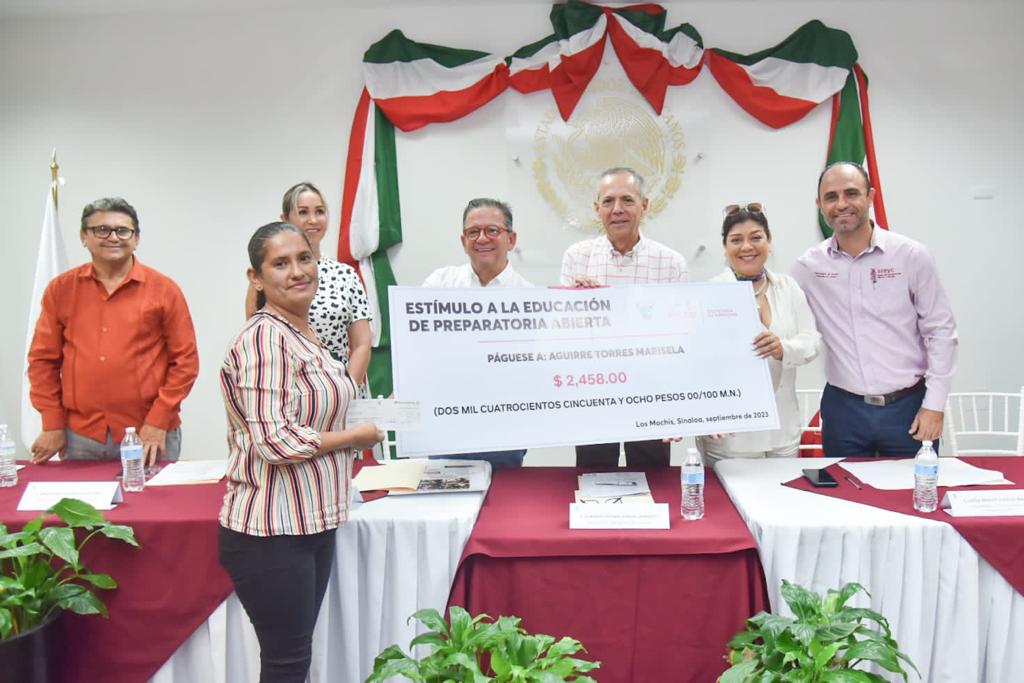 Durante el evento se contó con la presencia de la Coordinadora Estatal del Programa de Preparatoria Abierta Gilda Mariot Vidales Ibarra, quien felicitó al Alcalde y a los ahomenses por que Ahome es el único municipio que cuenta con este programa de estímulos económicos para estudiar la preparatoria abierta.