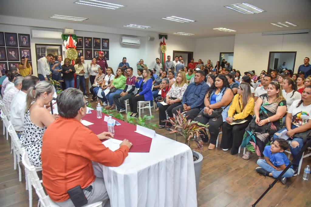 Los Mochis, Ahome, Sinaloa, a 8 de Septiembre del 2023.- Alrededor de 80 estudiantes ahomenses que culminaron sus estudios de preparatoria abierta gracias al Programa de Estímulos a la Culminación de la Preparatoria Abierta del Municipio de Ahome, recibieron de manos del Alcalde Gerardo Octavio Vargas Landeros, su beneficio de apoyo por 2 mil 458 pesos.