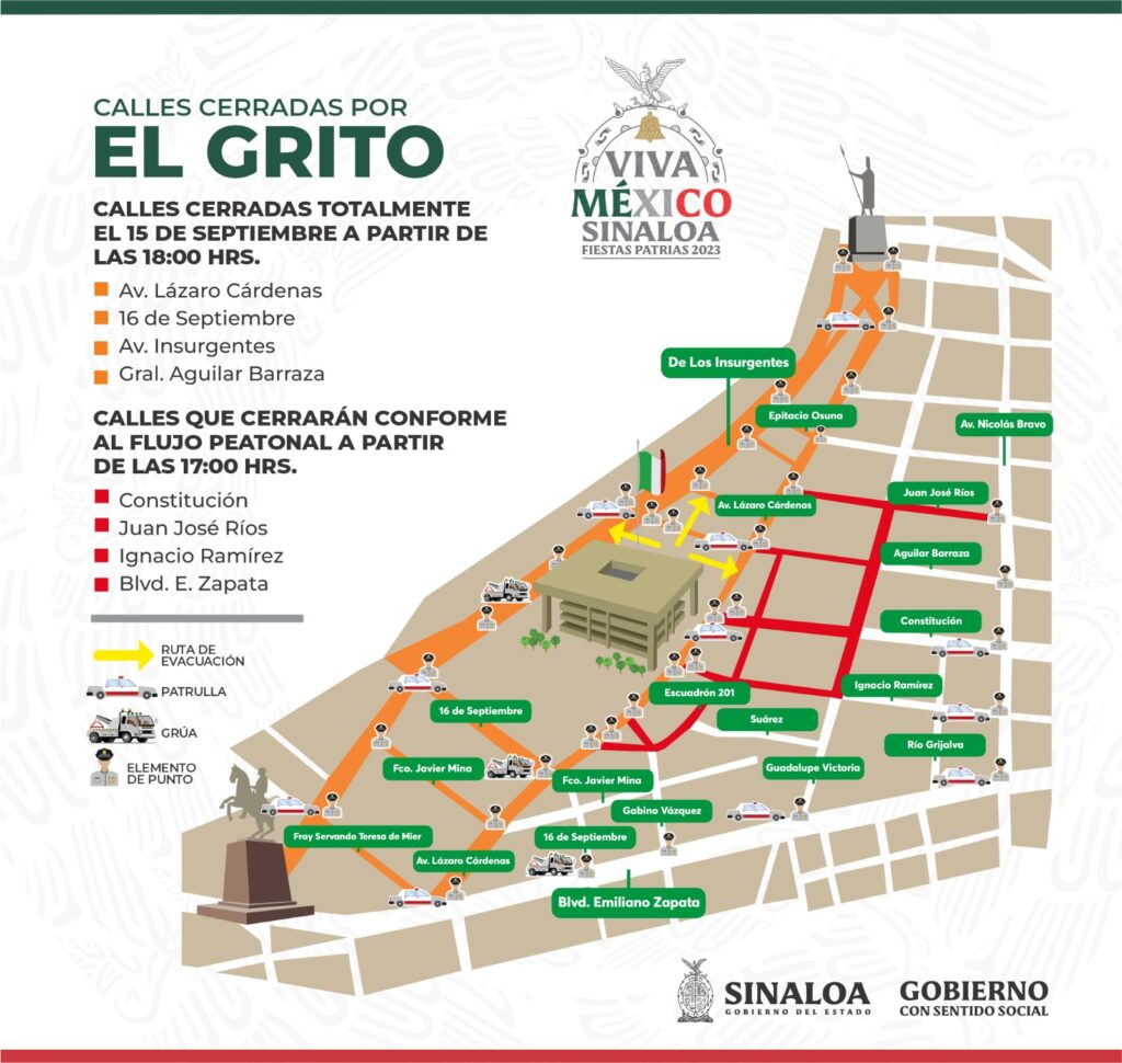 La principal actividad y que congregará a un mayor número de personas es la celebración del Grito de Independencia, la noche del 15 de septiembre, donde el gobernador Rubén Rocha Moya recordará y honrará a los héroes que nos dieron patria y libertad, con bandera en mano y repicando la campana del balcón principal de Palacio de Gobierno, en recuerdo al llamado que hiciera esa misma fecha pero de 1810 el cura don Miguel Hidalgo y Costilla, desde la iglesia de Dolores, Hidalgo.