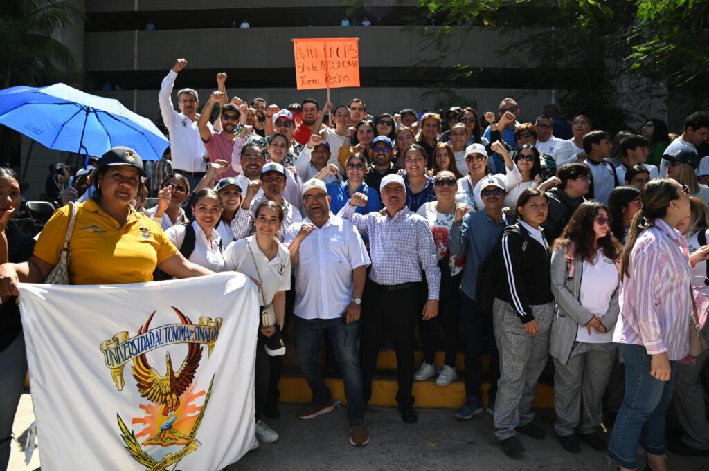 “Demandamos respeto a la educación, demandamos respeto a nuestra máxima casa de Estudio la Universidad Autónoma de Sinaloa, se le olvidó a este hombre de dónde viene, donde se formó, donde se le apoyó (…) el meterse con nuestro Rector titular doctor Jesús Madueña Molina se está metiendo con toda la comunidad universitaria”, manifestó la maestra Carla Susana Espinoza Ruelas, quien como otros universitarios también hicieron proclamas.