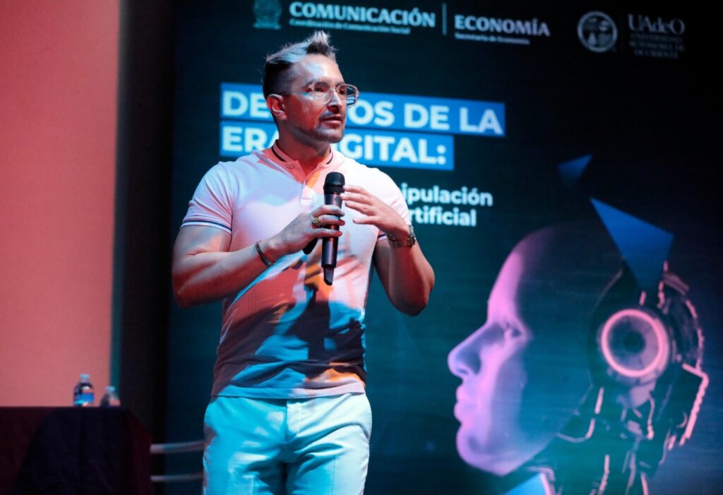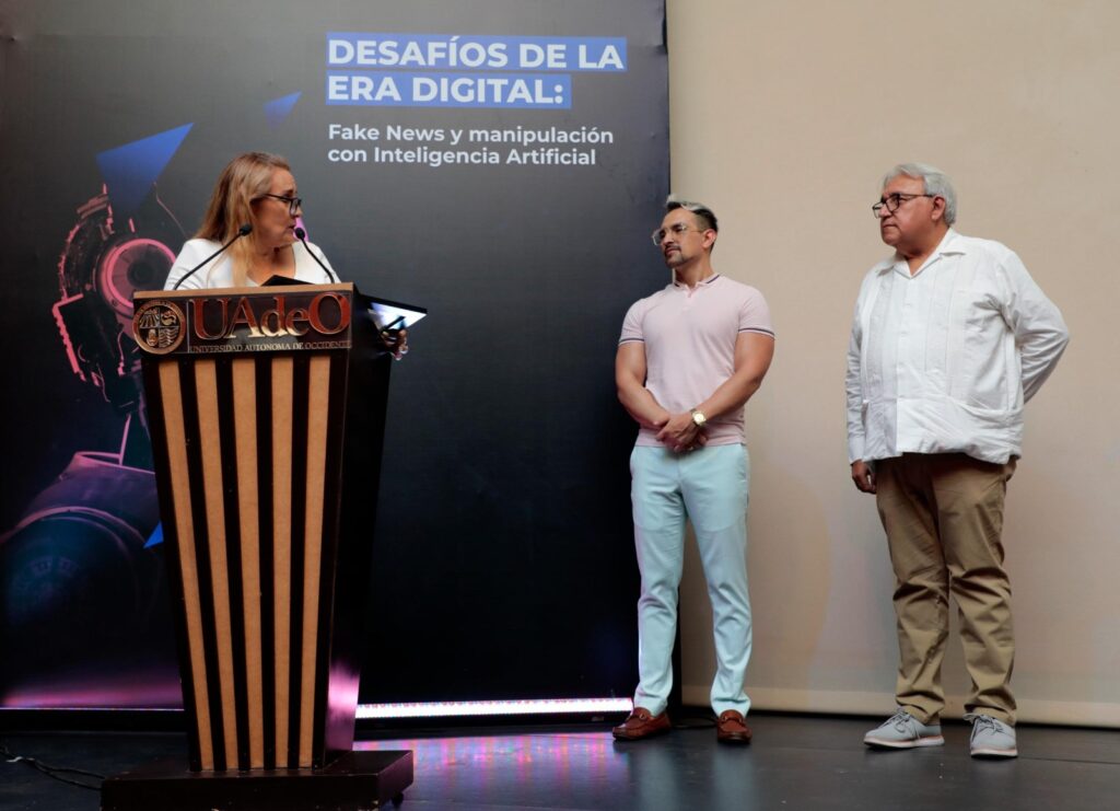 Culiacán, Sinaloa, a 17 de abril de 2024.- Con el propósito de advertir los riesgos y tener las herramientas para identificar las noticias falsas en redes sociales e Internet, conocidas como fake news, así como conocer los desafíos que presenta la innovación de la Inteligencia Artificial en la creación de contenido, la Coordinación de Comunicación Social del Gobierno del Estado, en colaboración con la Secretaría de Economía y con el apoyo de la Universidad Autónoma de Occidente, ofreció la conferencia titulada “Desafíos de la Era Digital: fake news y manipulación con Inteligencia Artificial”.