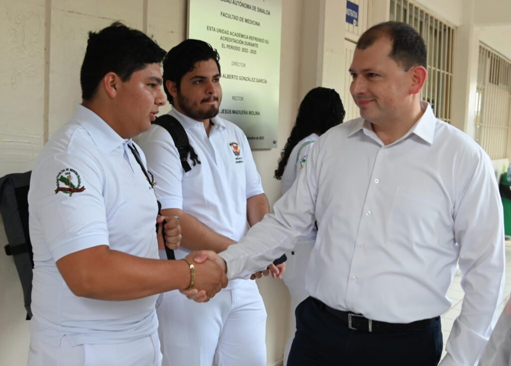Desde la emblemática Facultad de Medicina en el Campus de la Salud Lizárraga Otero dio la bienvenida a los miles de jóvenes que llenaron las aulas del bachillerato universitario y del Nivel Licenciatura, a quienes les expresó que ingresan a la mejor Universidad por sus indicadores de calidad donde los estudiantes son el centro del quehacer institucional y donde son formados integralmente.